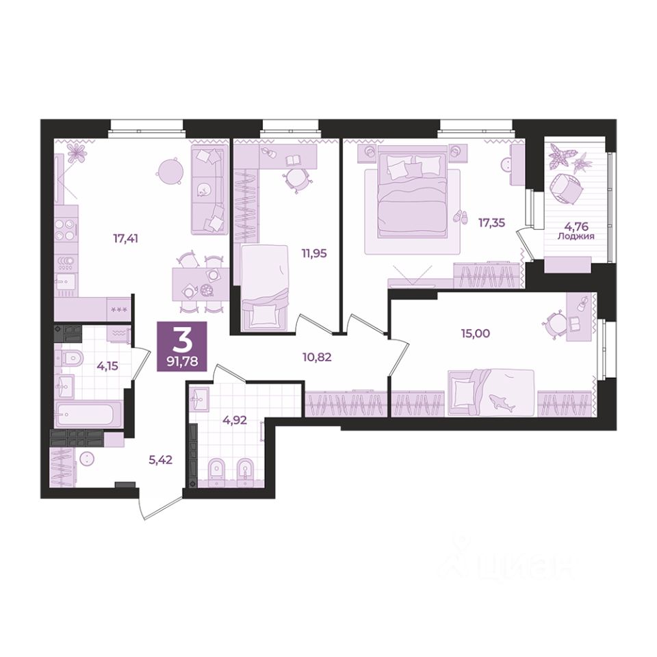 Общая площадь91,78 м2