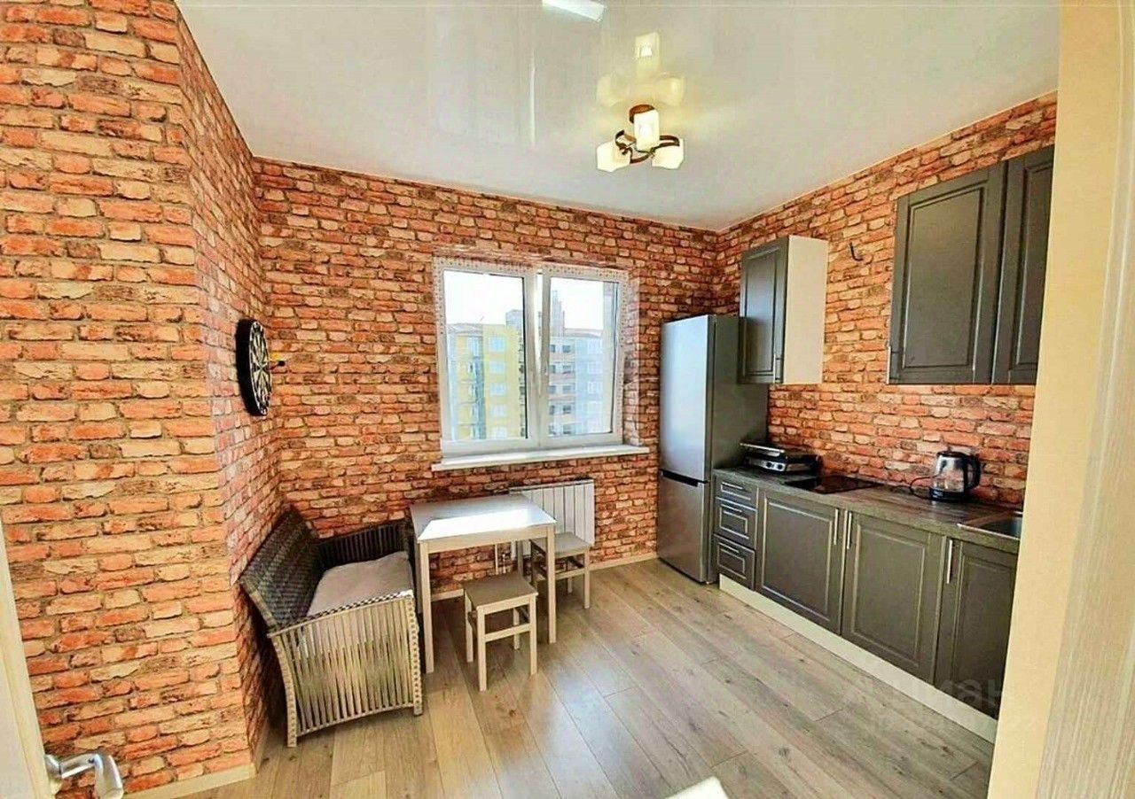 Удобная планировка: Просторная кухня-гостиная с выходом на застекленную лоджию. При желании можно возвести стену между комнатой и кухней и получить классическую однушку.
