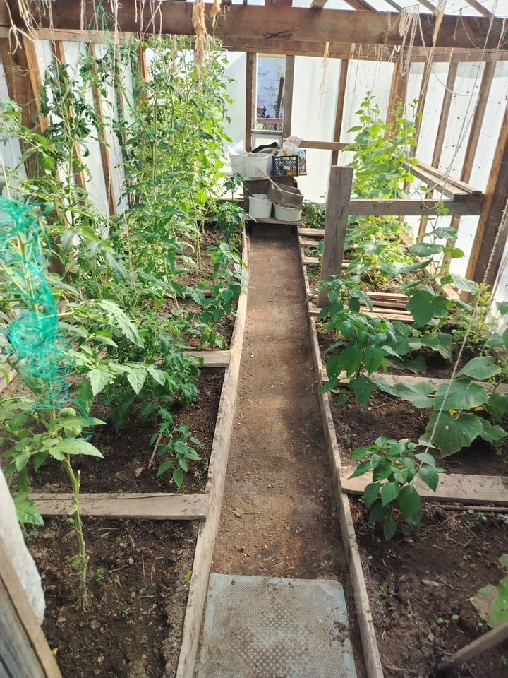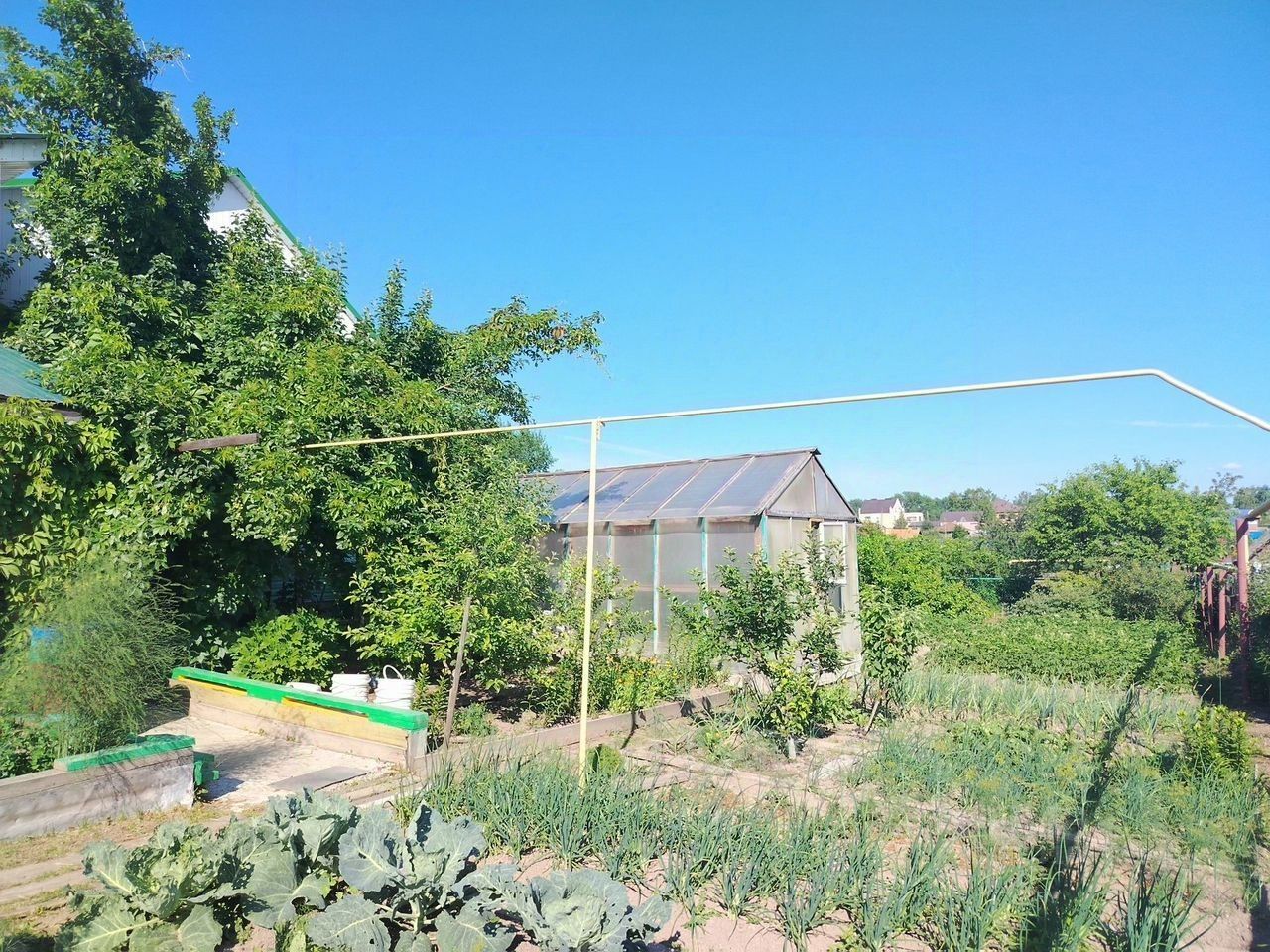 Участок 8 соток, все в собственности,межевание сделано. Участок огорожен забором из профнастила. На участке есть большая теплица и различные многолетние посадки кусты и деревья.