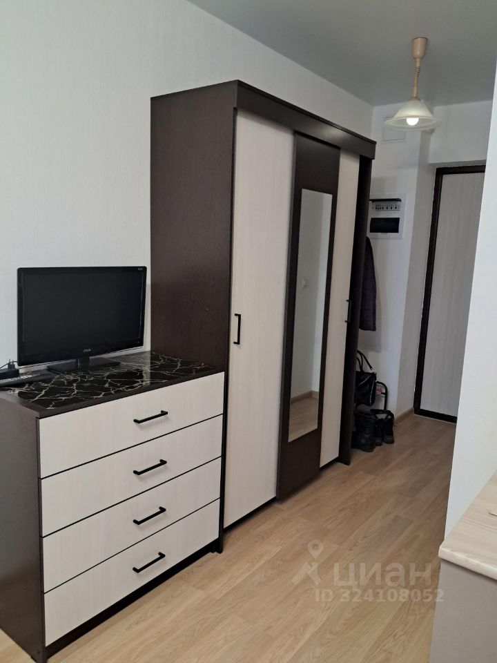 Сдам на длительный срок квартиру-студию. В квартире: кухонный гарнитур, холодильник, стиральная машина, диван, шкаф, комод.