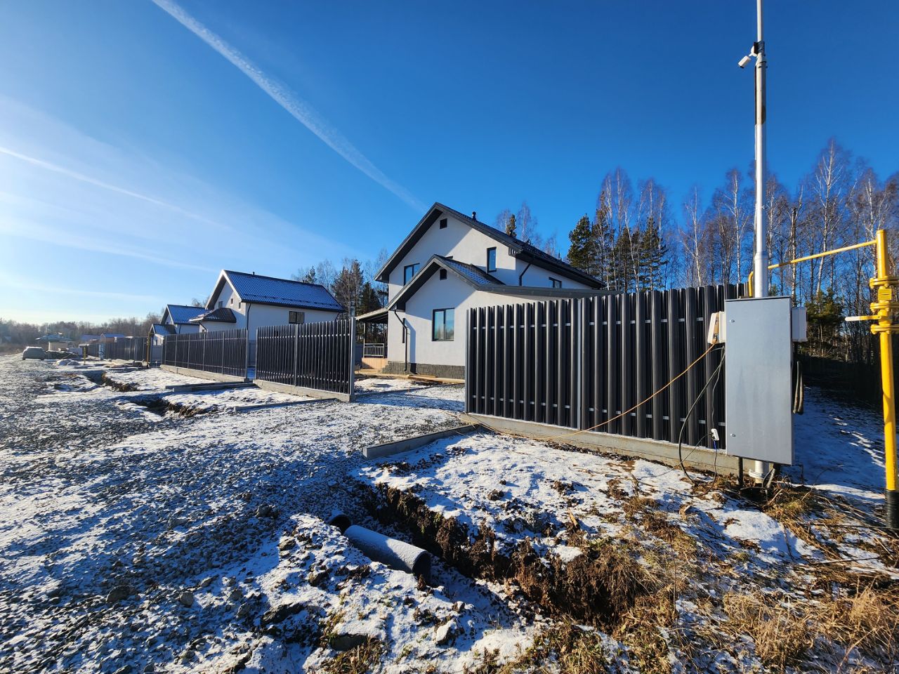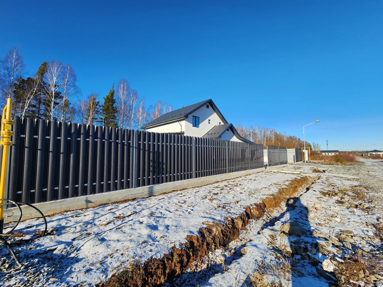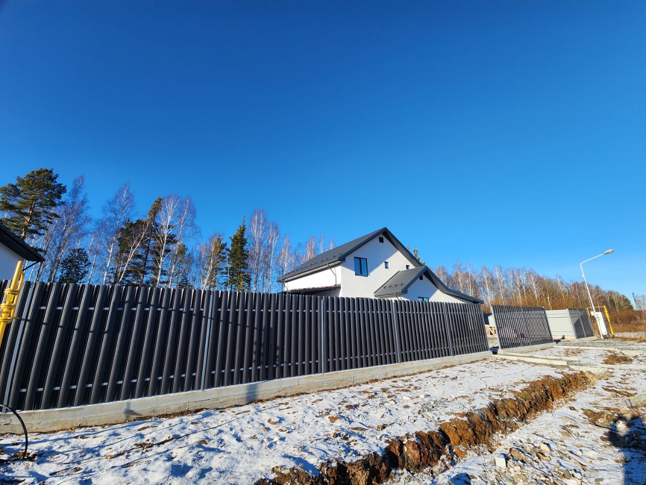 Безопасность и приватность: участок размером 11 соток аккуратно ограждён прочным капитальным забором с надежными въездными воротами и удобной калиткой. Перед домом предусмотрена парковочная зона.