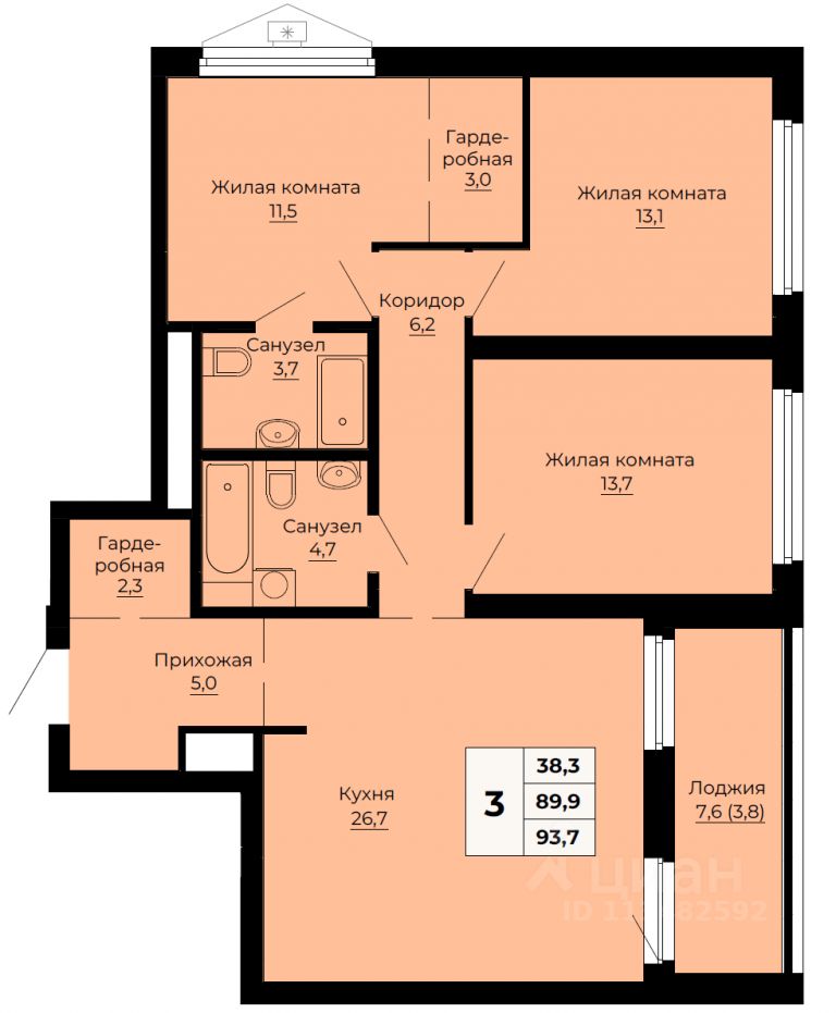 Продаётся 3-комнатная квартира в строящемся доме (Дом 2), срок сдачи: II-кв. 2026, общей площадью 93.7 кв.м., на 7 этаже. Ольховский парк расположился практически в центре города, среди зелени на берегу реки Ольховка.