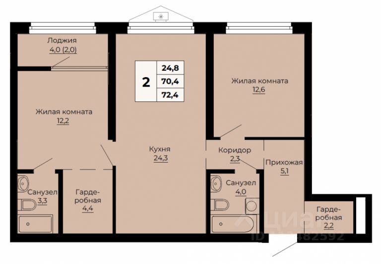 Продаётся 2-комнатная квартира в строящемся доме (Дом 2), срок сдачи: II-кв. 2026, общей площадью 72.4 кв.м., на 24 этаже. Ольховский парк расположился практически в центре города, среди зелени на берегу реки Ольховка.