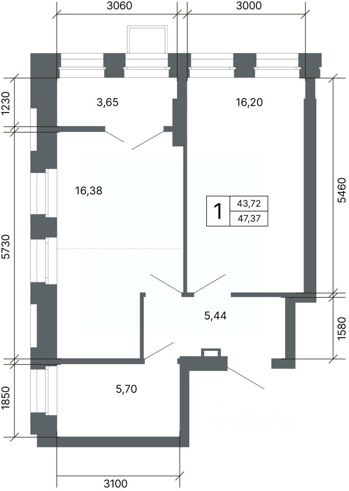 Общая площадь47,2 м2