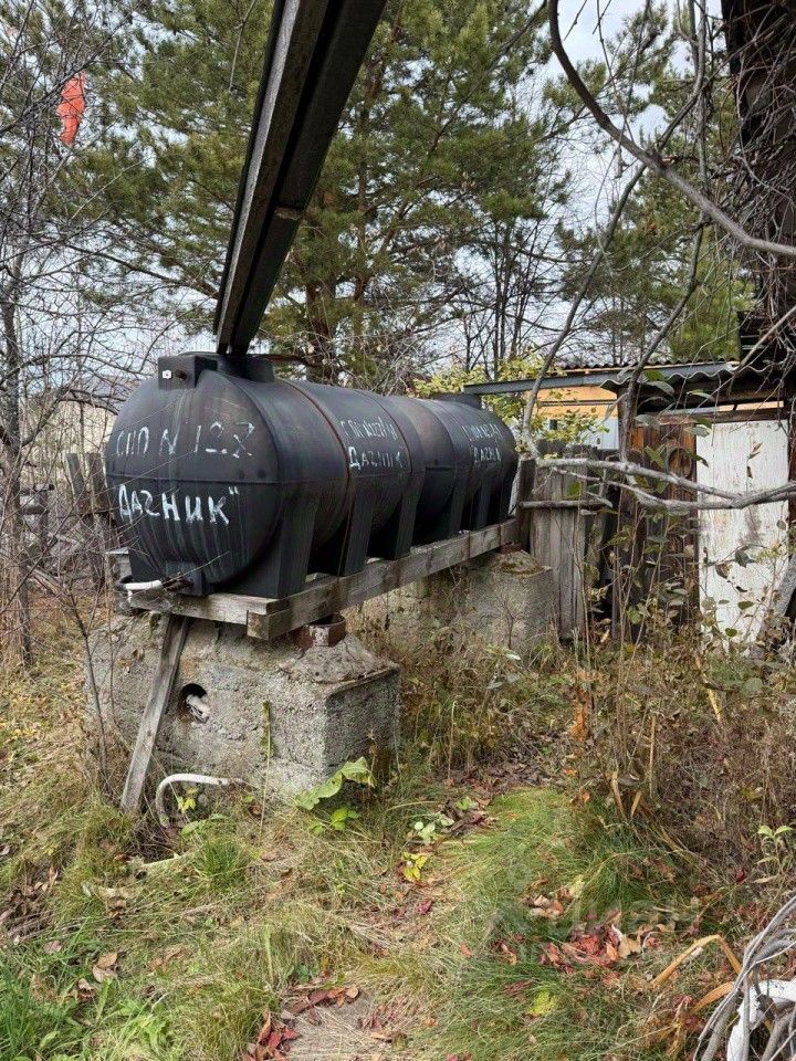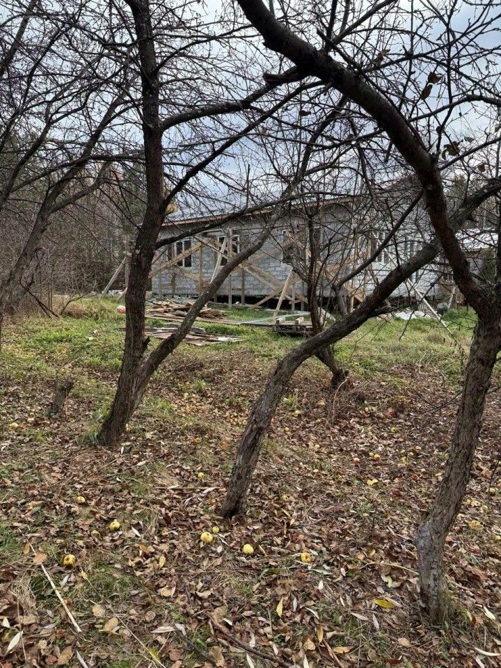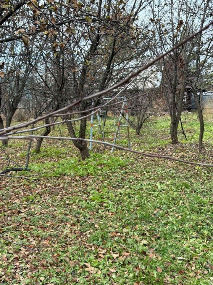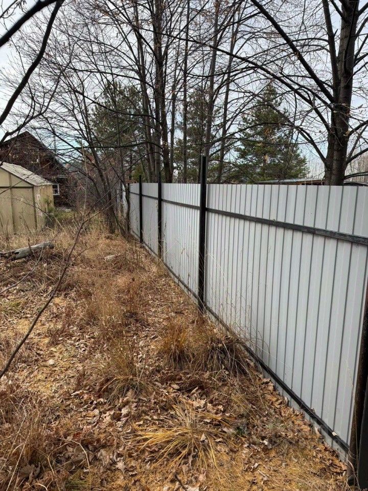 С трех сторон столбы для забора ( с одной стороны забор), емкости пластиковые накопительные для воды, плодово-ягодные деревья и кусты (яблони, груди, слива, вишня, малина, смородина, крыжовник, черноплодка и прочее