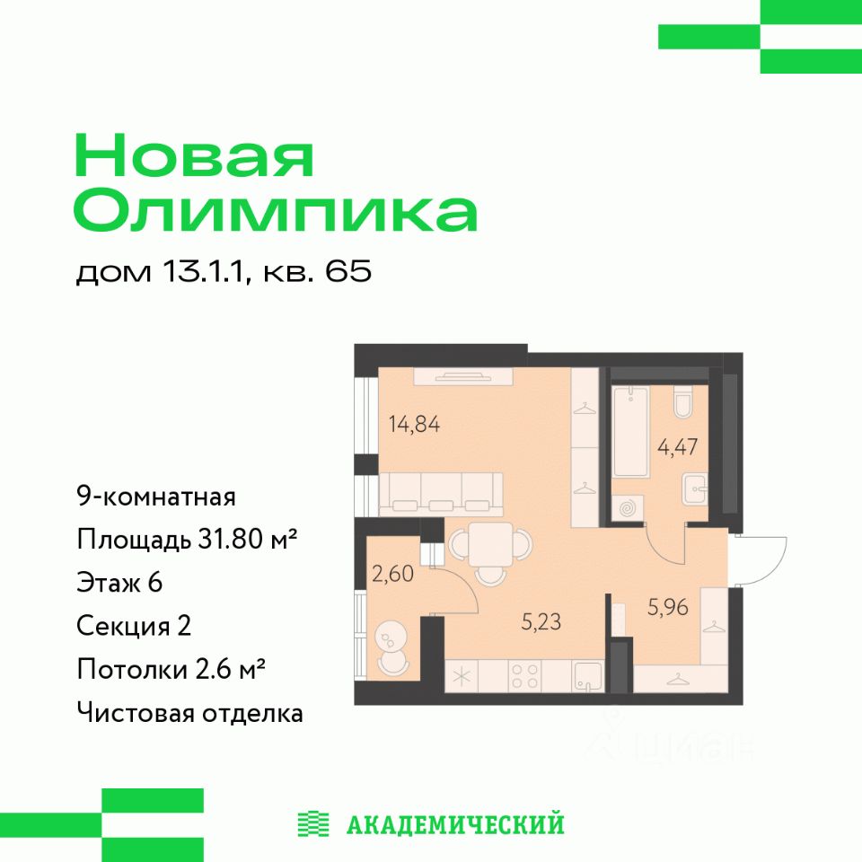 продам 1-к, Академика Парина, 13.15 531 850 ₽