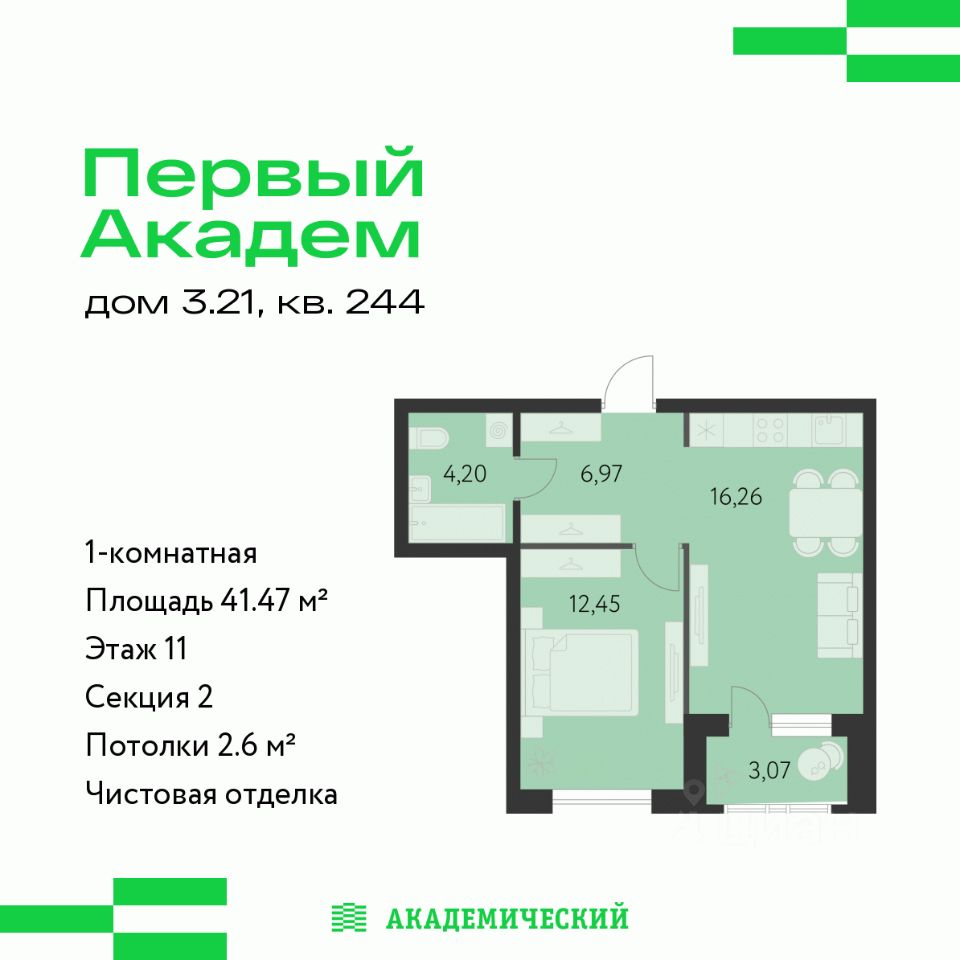 продам 1-к, Краснолесья, 3.2.1 стр.6 820 050 ₽