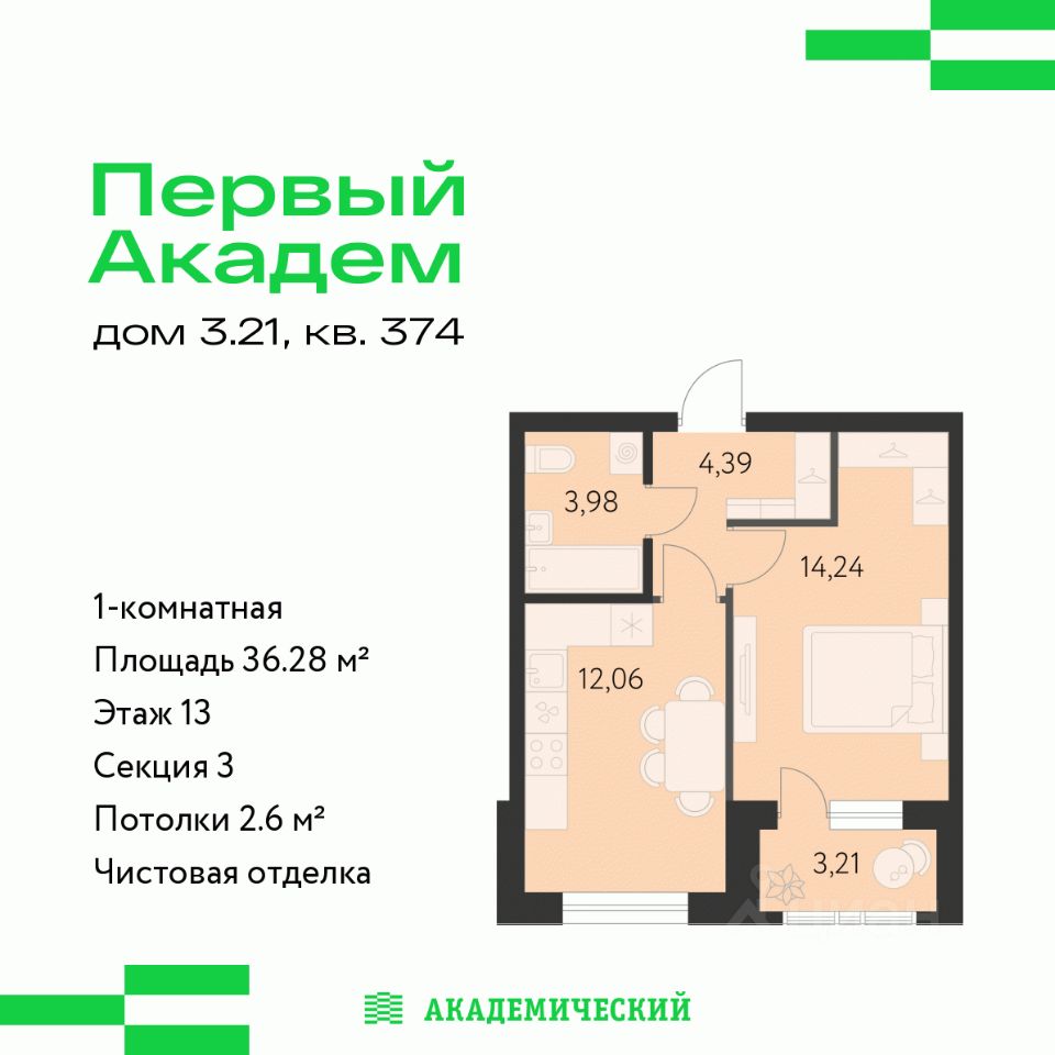 продам 1-к, Краснолесья, 3.2.1 стр.5 827 300 ₽