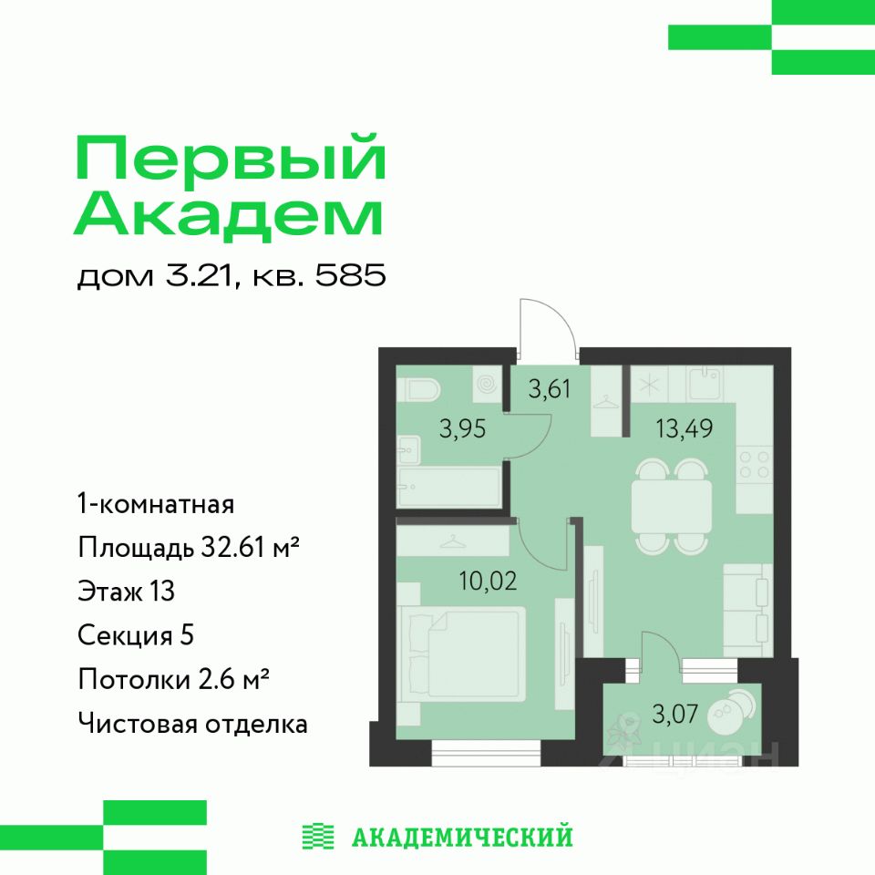 продам 1-к, Краснолесья, 3.2.1 стр.5 799 750 ₽