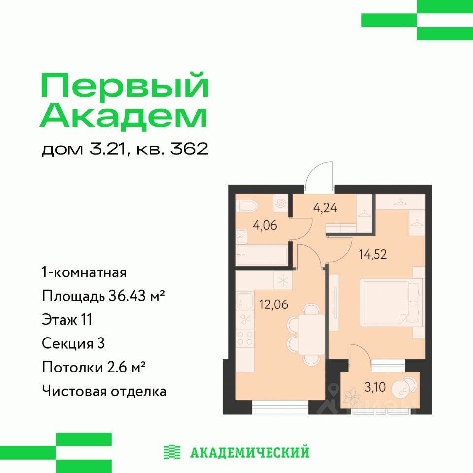 продам 1-к, Краснолесья, 3.2.1 стр.5 797 850 ₽