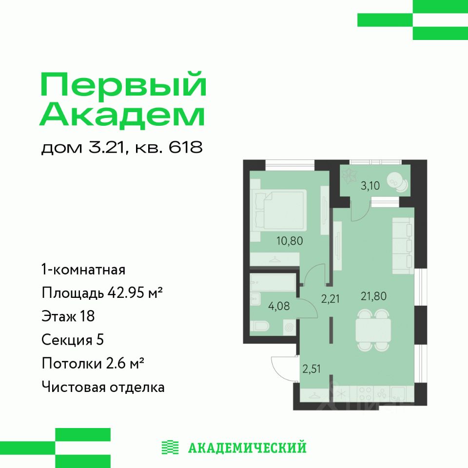 продам 1-к, Краснолесья, 3.2.1 стр.7 429 000 ₽