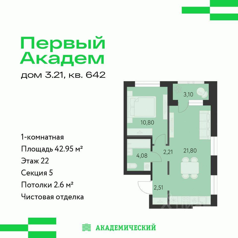 продам 1-к, Краснолесья, 3.2.1 стр.7 560 100 ₽