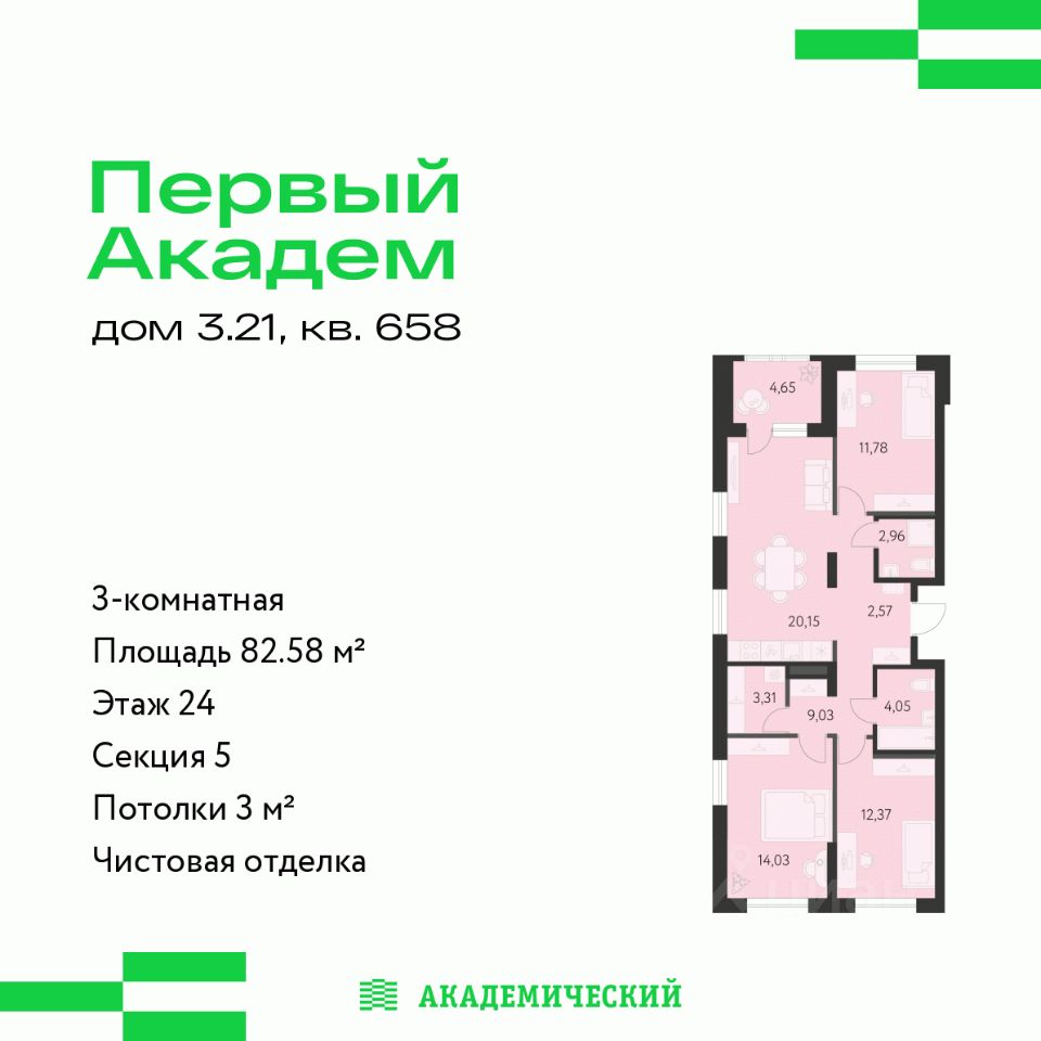 продам 3-к, Краснолесья, 3.2.1 стр.13 262 950 ₽