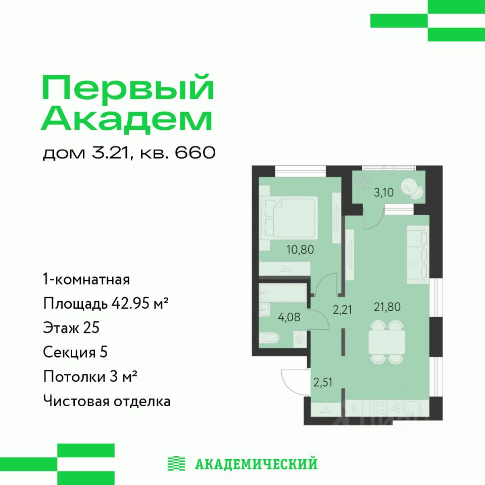 Продается 1-комнатная квартира площадью 42.95 кв.м. от девелопера ''Академический'' в жилом квартале ''Первый Академ''. Срок сдачи дома в 2028 году. Выгоды и скидка напрямую от застройщика.