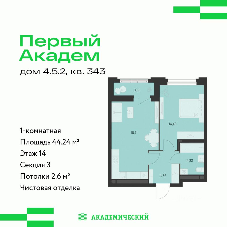 Застройщик - Специализированный застройщик «РСГ - Академическое», АО. Проектная декларация опубликована на сайте наш.дом.рф
