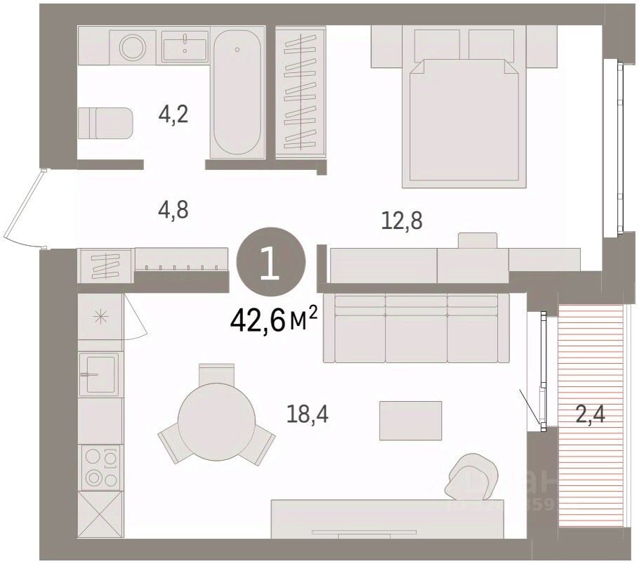 Общая площадь42,6 м2