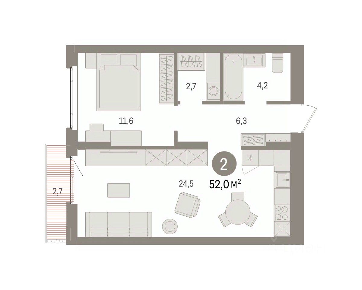 Общая площадь52 м2