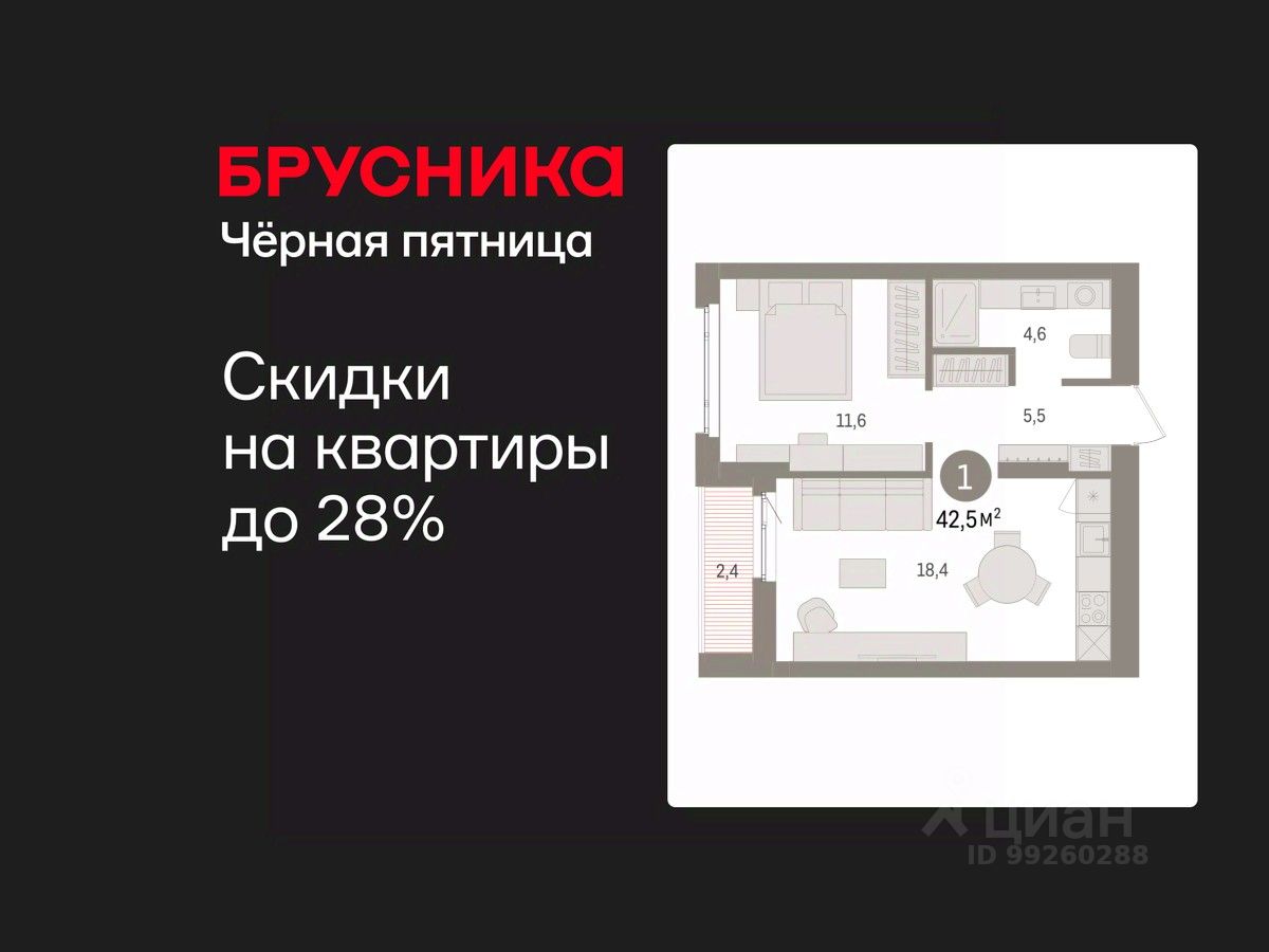 1-комн. квартира от застройщика с предчистовой отделкой в ЖК ''Квартал Траектория'' на 8 этаже. Общая площадь: 42.5 кв.м., жилая: 11.3 кв.м., площадь просторной кухни-столовой: 17.6 кв.м. Все окна выходят на одну сторону. В квартире одна лоджия, один совмещенный санузел. Высота потолков 2.82 м.