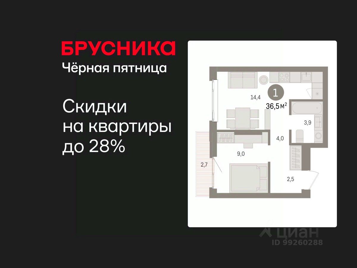 1-комн. квартира с предчистовой отделкой в ЖК ''Квартал Траектория'' на 7 этаже. Общая площадь: 36.5 кв.м., жилая: 9 кв.м., площадь просторной кухни-столовой: 14.4 кв.м. Все окна выходят на одну сторону. В квартире один балкон, один совмещенный санузел. Высота потолков 2.82 м.