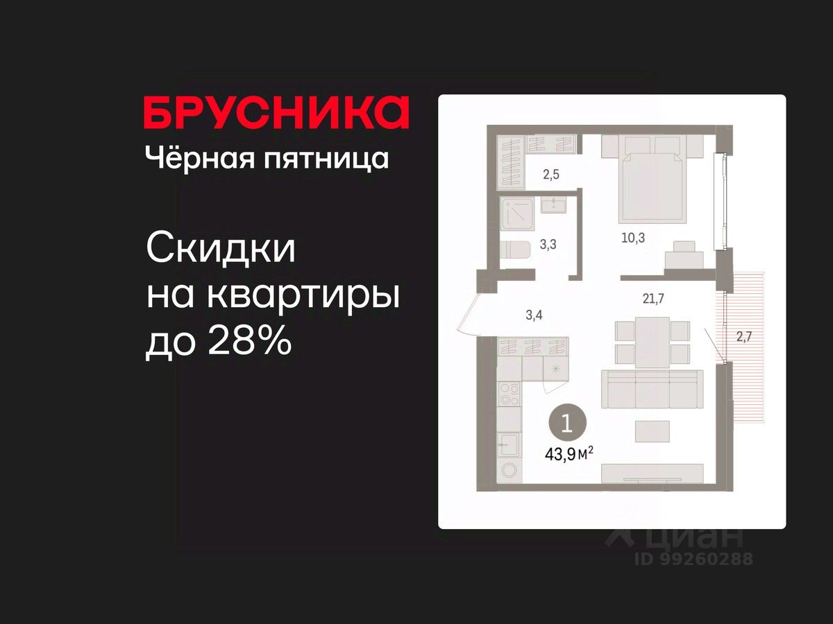 Просторная однокомнатная квартира с предчистовой отделкой в ЖК ''Квартал Траектория'' на 5 этаже. Общая площадь: 43.9 кв.м., жилая: 10.3 кв.м., площадь просторной кухни-столовой: 21.7 кв.м. Все окна выходят на одну сторону. В квартире один балкон, один совмещенный санузел. Высота потолков 2.82 м.