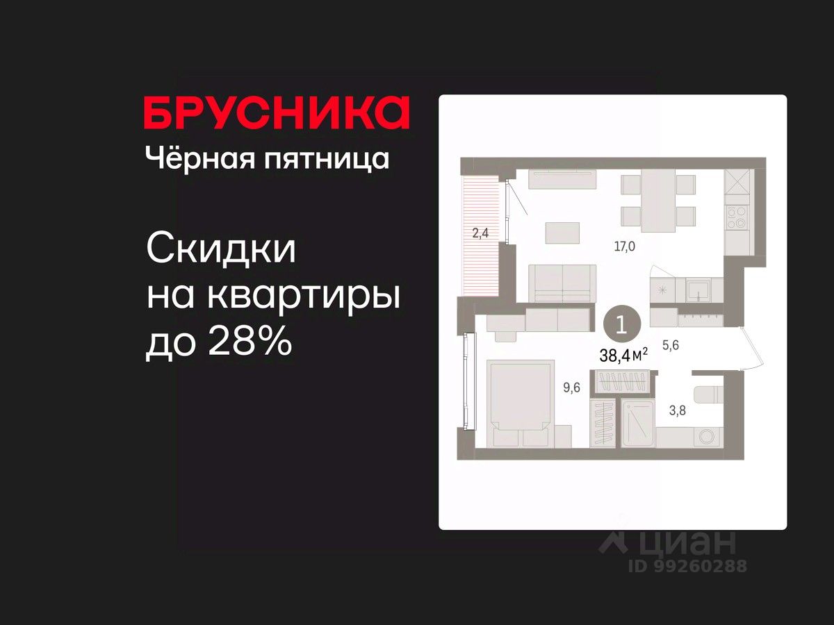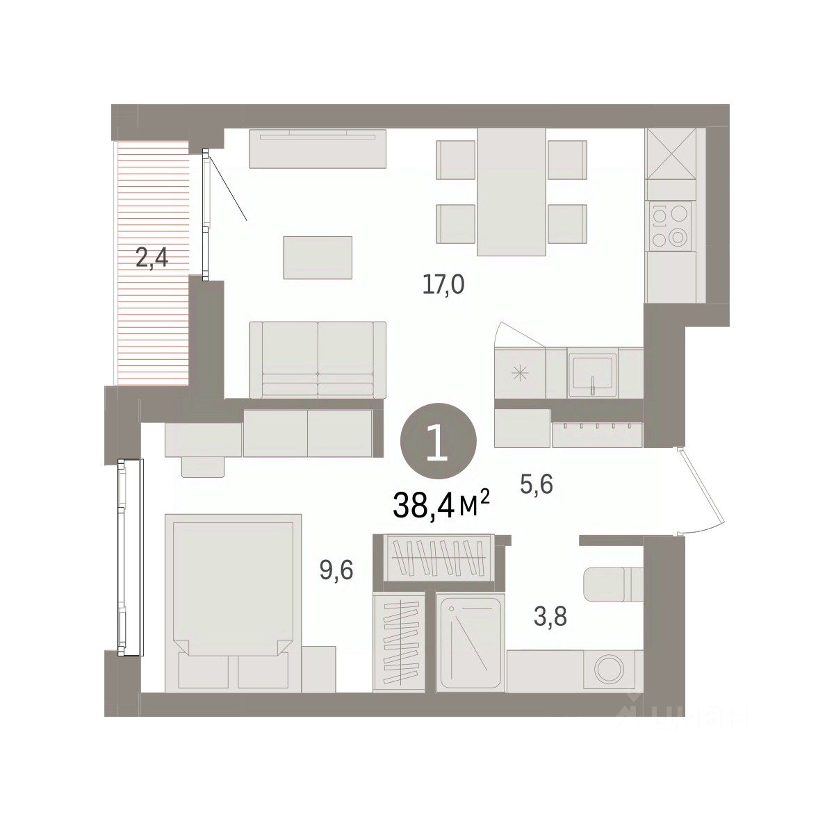 Продается 1-комн. квартира от застройщика с предчистовой отделкой в ЖК ''Квартал Траектория'' на 5 этаже. Общая площадь: 38.4 кв.м., жилая: 9.6 кв.м., площадь просторной кухни-столовой: 17 кв.м. Все окна выходят на одну сторону. В квартире одна лоджия, один совмещенный санузел. Высота потолков 2.82 м.