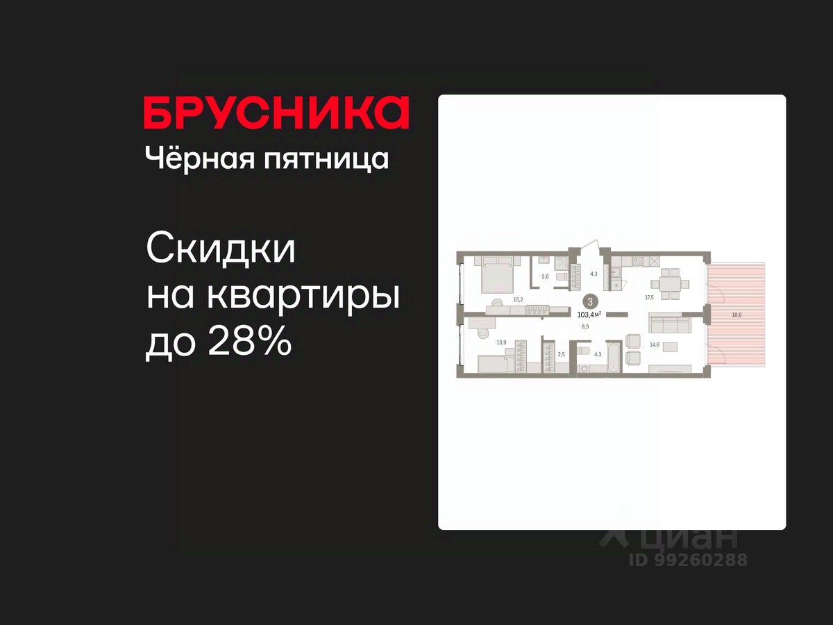 3-комн. квартира от застройщика с предчистовой отделкой в ЖК ''Квартал Траектория'' на 2 этаже. Общая площадь: 103.4 кв.м. Высота потолков 2.82 м.