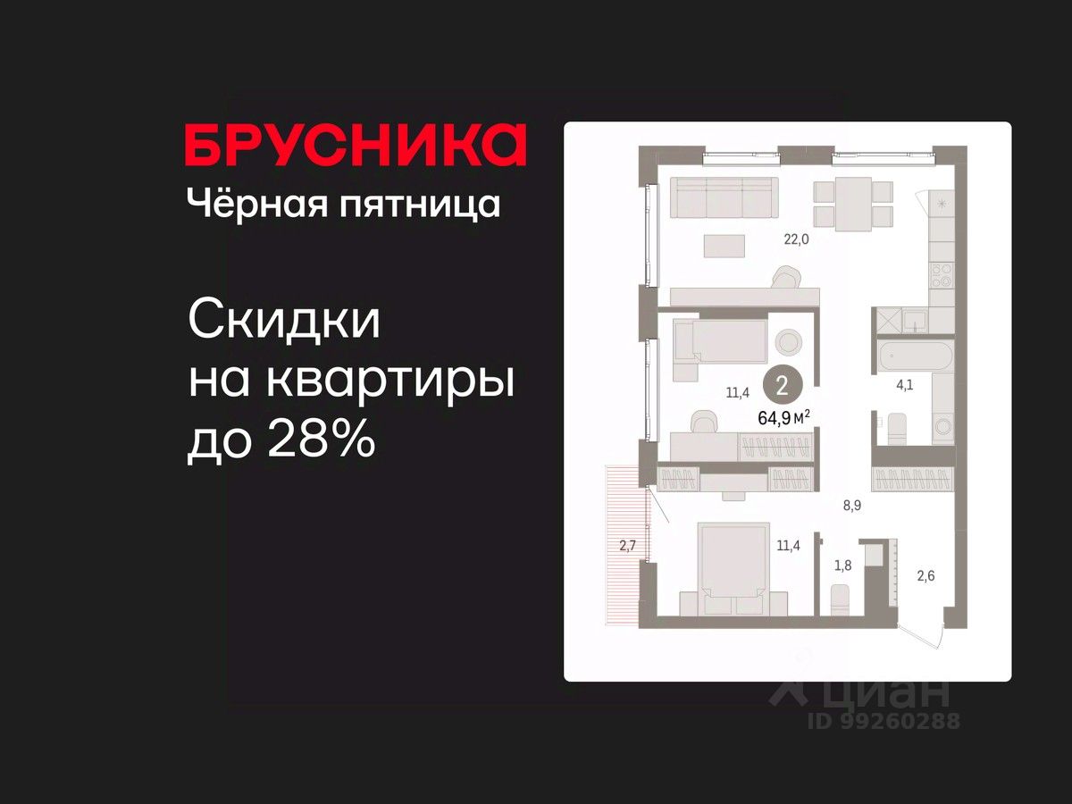 Просторная 2-комн. квартира с предчистовой отделкой в ЖК ''Квартал Траектория'' на 11 этаже. Общая площадь: 64.9 кв.м., жилая: 22.3 кв.м., площадь просторной кухни-столовой: 22.2 кв.м. Угловая квартира, идеально подойдет любителям тишины и панорамных видов. В квартире два балкона, два совмещенных санузла. Высота потолков 2.82 м.