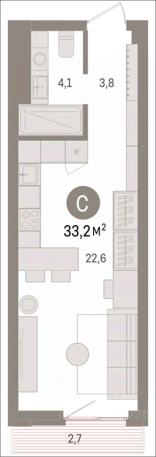 Студия в квартале ''Траектория''. Особенности планировки: предчистовая отделка, балкон. квартиры в нашей базе: МНВ01-Ж1.12.4.
