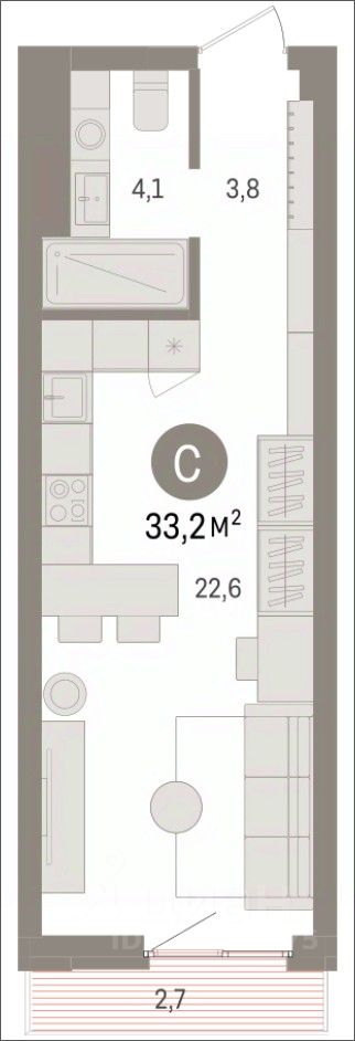 Студия в квартале ''Траектория''. Особенности планировки: предчистовая отделка, балкон. квартиры в нашей базе: МНВ01-Ж1.11.4.