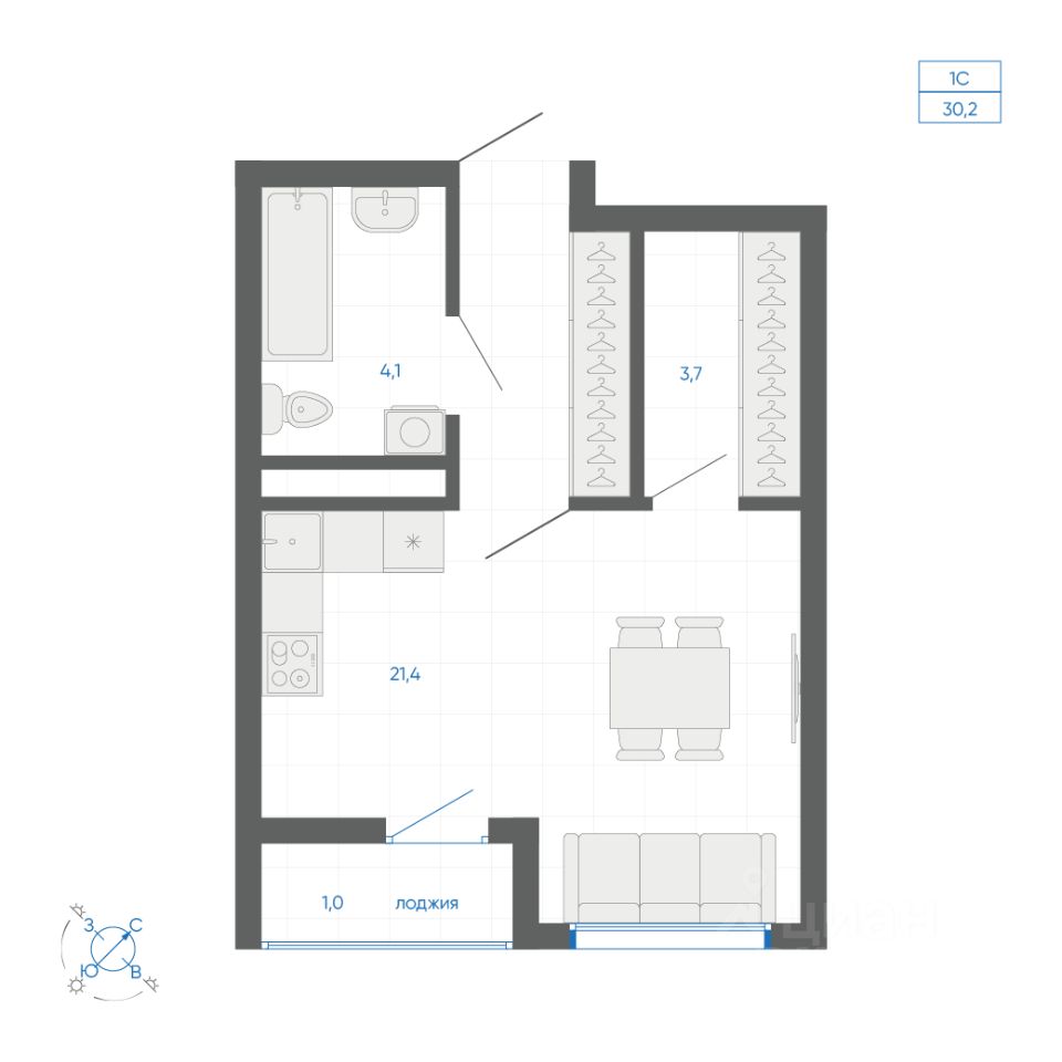 продам 1-к, Академика Парина, 12/65 780 000 ₽