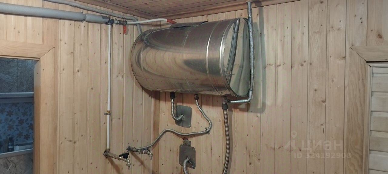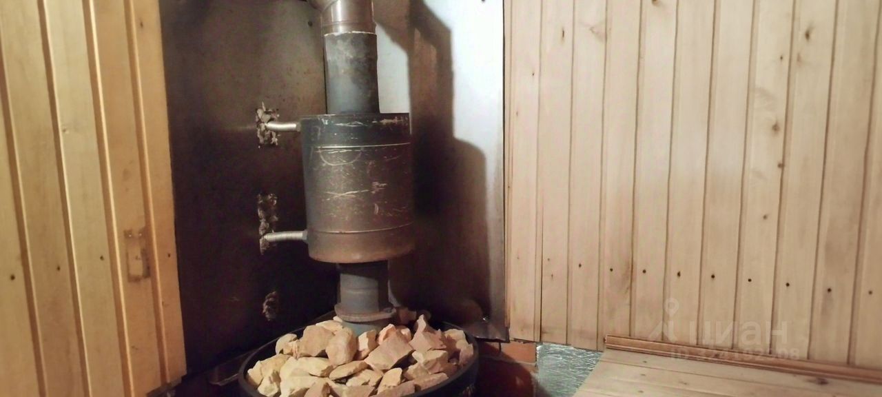 Просторная баня имеет несколько помещений: раздевалка, помывочная и парная, установлена новая чугунная печь. Все стены обшиты вагонкой.