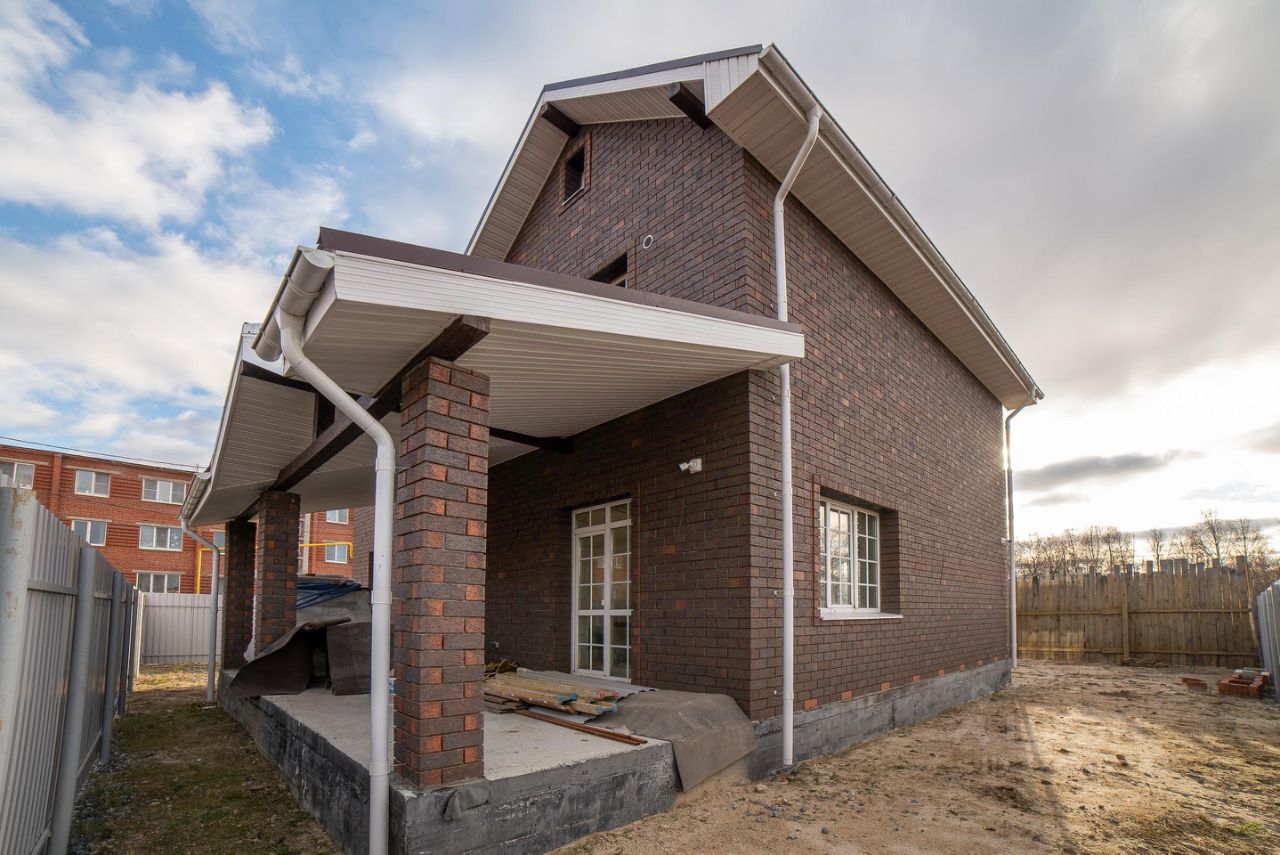 Дом на общестроительных сваях (больше размером, чем для ижс). Газобетон 500 + утеплитель 100 + кирпич облицовочный ''Бавария''. 1-й этаж - монолитная плита, в т. ч. на террасе. Перекрытия железобетонные между 1 и 2 этажами. 2-й этаж полноценный (не мансардный). Кровля с чердаком холодная с 2 окнами. Установлен люк с лестницей на чердак. Входная Сейф-дверь с теплоразрывом.