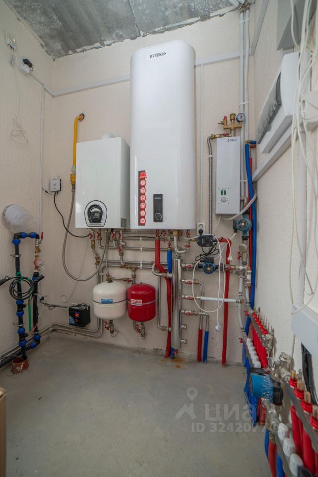 Газовый и электрокотел (как запасной вариант). Работает сейчас на газу. Отопление управляется через мобильное приложение. Теплый пол (ВОДЯНОЙ) по всей площади 1 этажа + радиаторы под каждым окном на 1-м и 2-м этажах. Система климата контролируется датчиками температуры. Есть приточная вентиляция в каждой комнате.