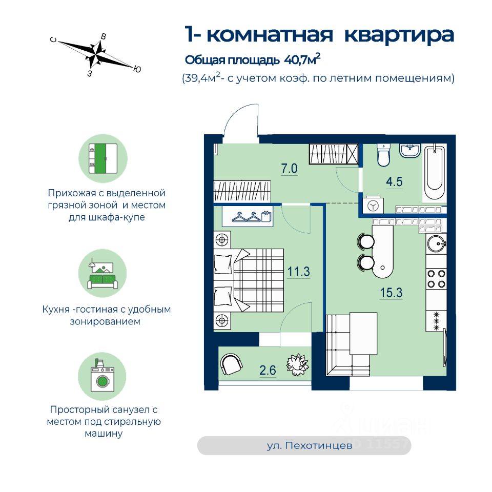 Продаётся 1-комнатная квартира в строящемся доме (Дом 1), срок сдачи: IV-кв. 2025, общей площадью 39.4 кв.м., на 23 этаже. Новый жилой комплекс ''Estelle'' от застройщика ''СЗ Инвестстрой'' расположен по адресу: г. Екатеринбург, улица Пехотинцев.
