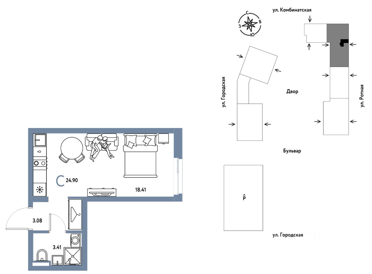 Продаётся студия в строящемся доме (Дом 1), срок сдачи: II-кв. 2027, общей площадью 24.9 кв.м., на 7 этаже. Новый жилой комплекс ''Уральский сад'' от застройщика ''ГК Страна Девелопмент'' расположен по адресу: г. Екатеринбург, посёлок Совхозный, Комбинатская улица.