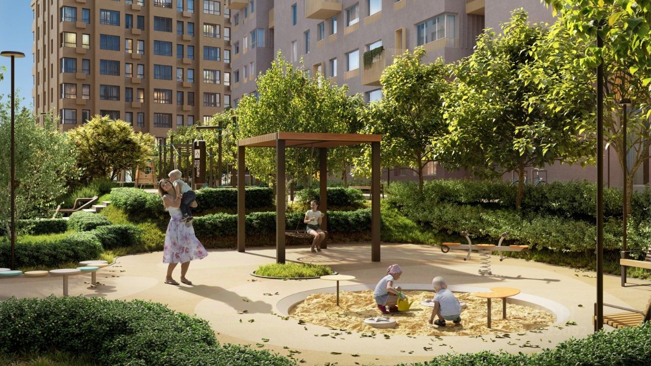 Приватный двор с видеонаблюдением скрыт между домами и закрыт для автомобилей и случайных прохожих. Здесь приятно проводить время в любое время года: летом можно укрыться в тени деревьев, осенью наслаждаться яркими красками, зимой гулять вдоль заснеженных яблонь, а весной встречать пробуждение природы.