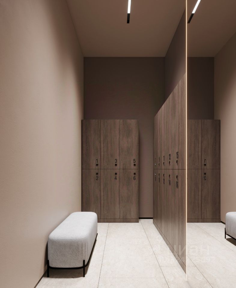 Сквозной холл с мягким лобби служит нейтральной территорией для экспресс-встреч и зоной ожидания для курьеров. В холлах предусмотрены гостевые санузлы, а также зоны с доступом только для жителей: колясочная и место для хранения малогабаритного снаряжения.