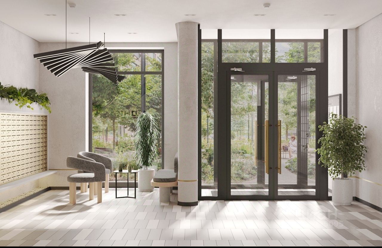 Сквозной холл с мягким лобби служит нейтральной территорией для экспресс-встреч и зоной ожидания для курьеров. В холлах предусмотрены гостевые санузлы, а также зоны с доступом только для жителей: колясочная и место для хранения малогабаритного снаряжения.