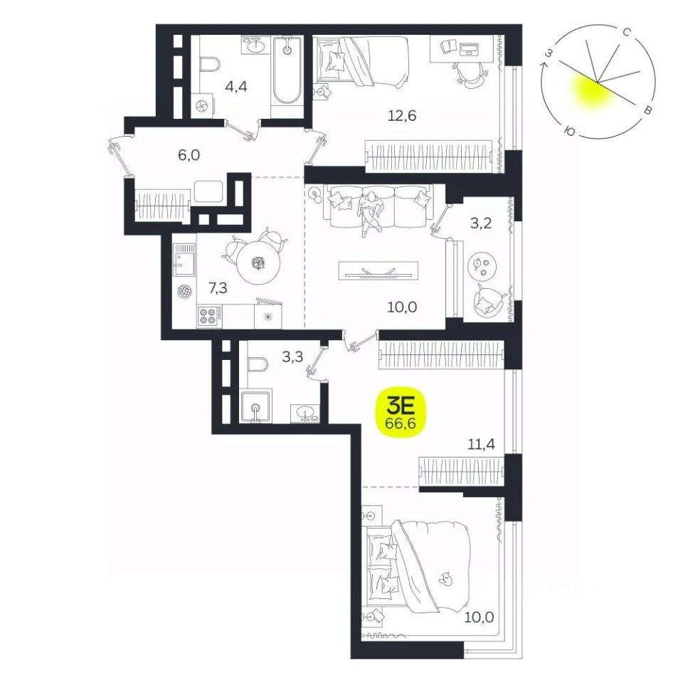 Общая площадь66,6 м2