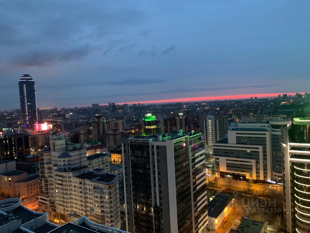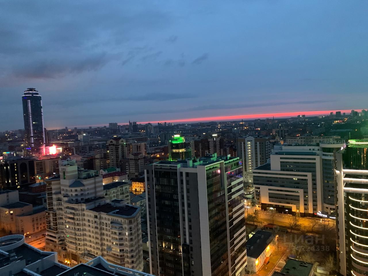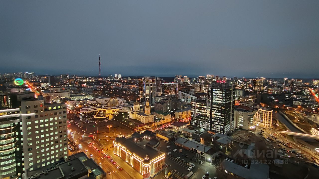 Квартира-студия с панорамными окнами на 28 этаже в историческом центре Екатеринбурга.