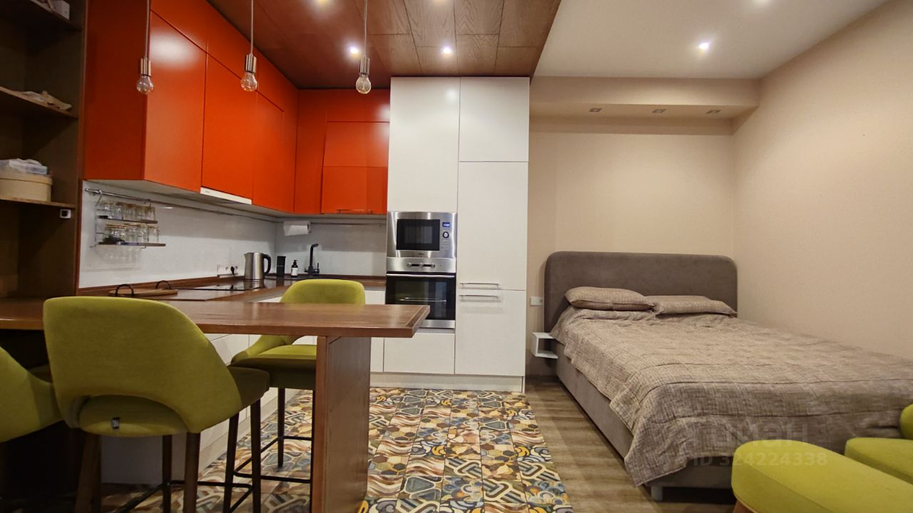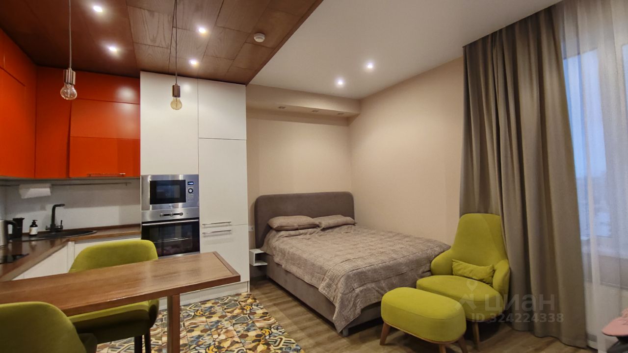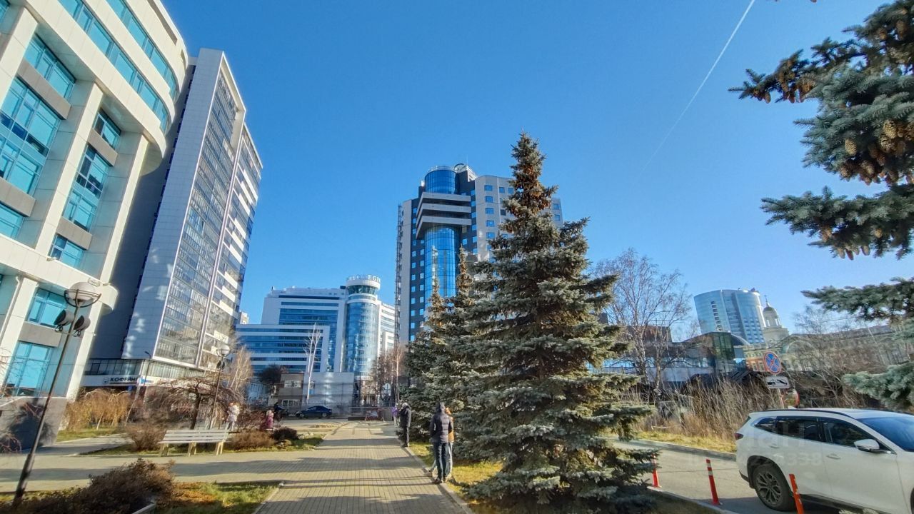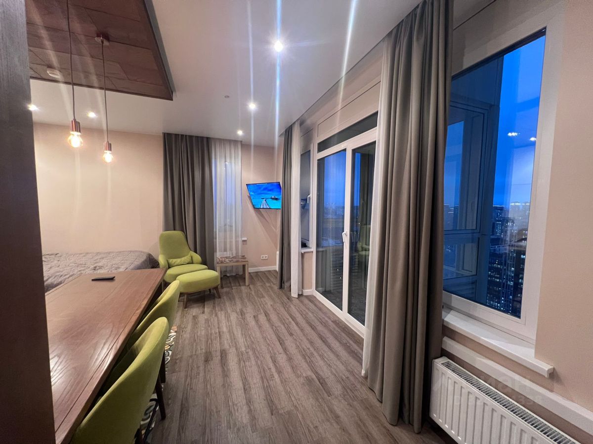 Квартира-студия с панорамными окнами на 28 этаже в историческом центре Екатеринбурга.