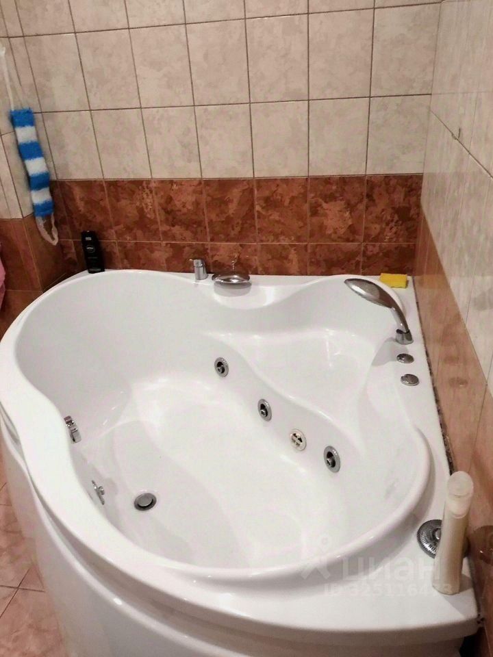 Санузел совмещённый — 12 кв м! Стены, пол — кафель. Установлены унитаз, раковина, биде, раковина со шкафчиком, угловая ванна с гидромассажем.