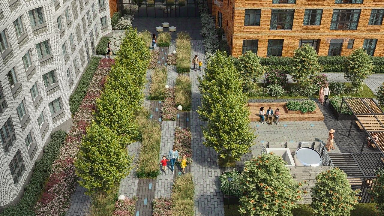 Квартал, в котором рациональность соединяется с творчеством, а архитектурная выразительность — с современными технологиями комфорта. Эффективные планировки, двор-сад без машин, двухуровневая подземная парковка и коммерческие помещения на первых этажах создают функциональную основу комплекса. Статус подчеркивает парадный вестибюль с ресепшн, а художественные акценты в общественных пространствах формируют атмосферу, вдохновляющую на новые идеи.