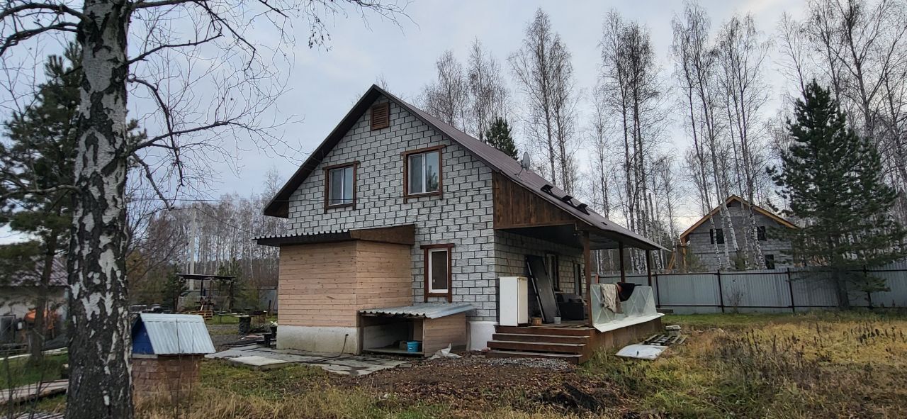 Продам дом. Дом построен в 2021 году(по документам 2022), фундамент - сплошная плита более 30 см толщиной, материал стен - теплоблок (не путать с пеноблоком,твинблоком,газоблоком и прочими похожими материалами, они ни в какое сравнение не идут))) В доме 2 этажа: на первом этаже кухня, гостиная, душевая, туалет и котельная, на втором этаже 3 спальные комнаты и туалет. Лестница на 2 этаж деревянная. Канализация - ж/б кольца (3 шт), скважина - 50 м (вода очень вкусная) заведены в дом. С правой стороны дома сделана летняя веранда. На участке имеется теплица, небольшой курятник, начато строительство бани с мангалом. Яблоня посажена в 2021 году, ещё маленькая. Участок каждый год обрабатываем от клещей. Вокруг участка с 3 сторон соседей нет.